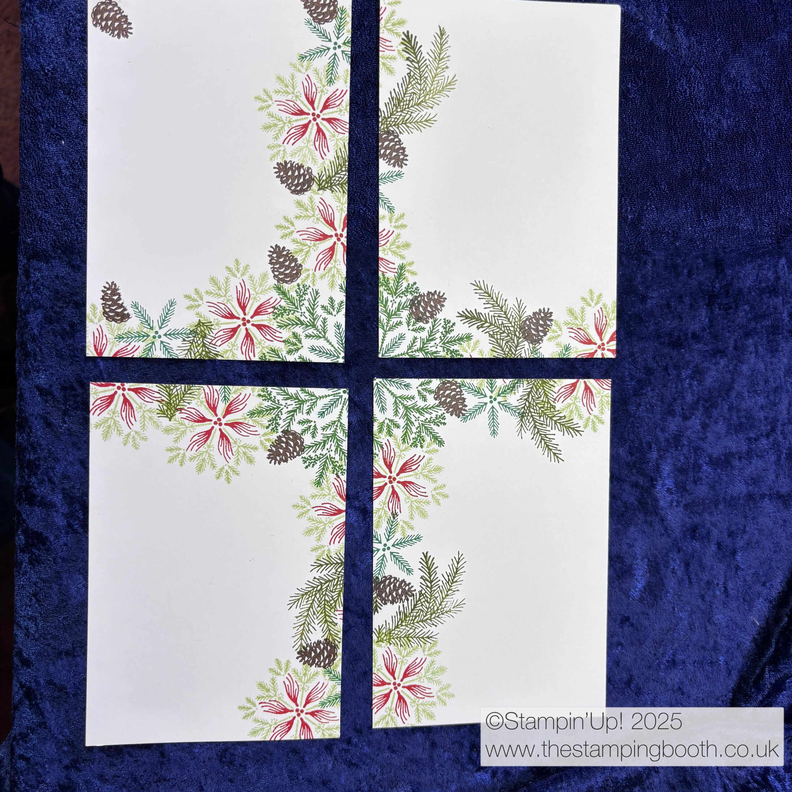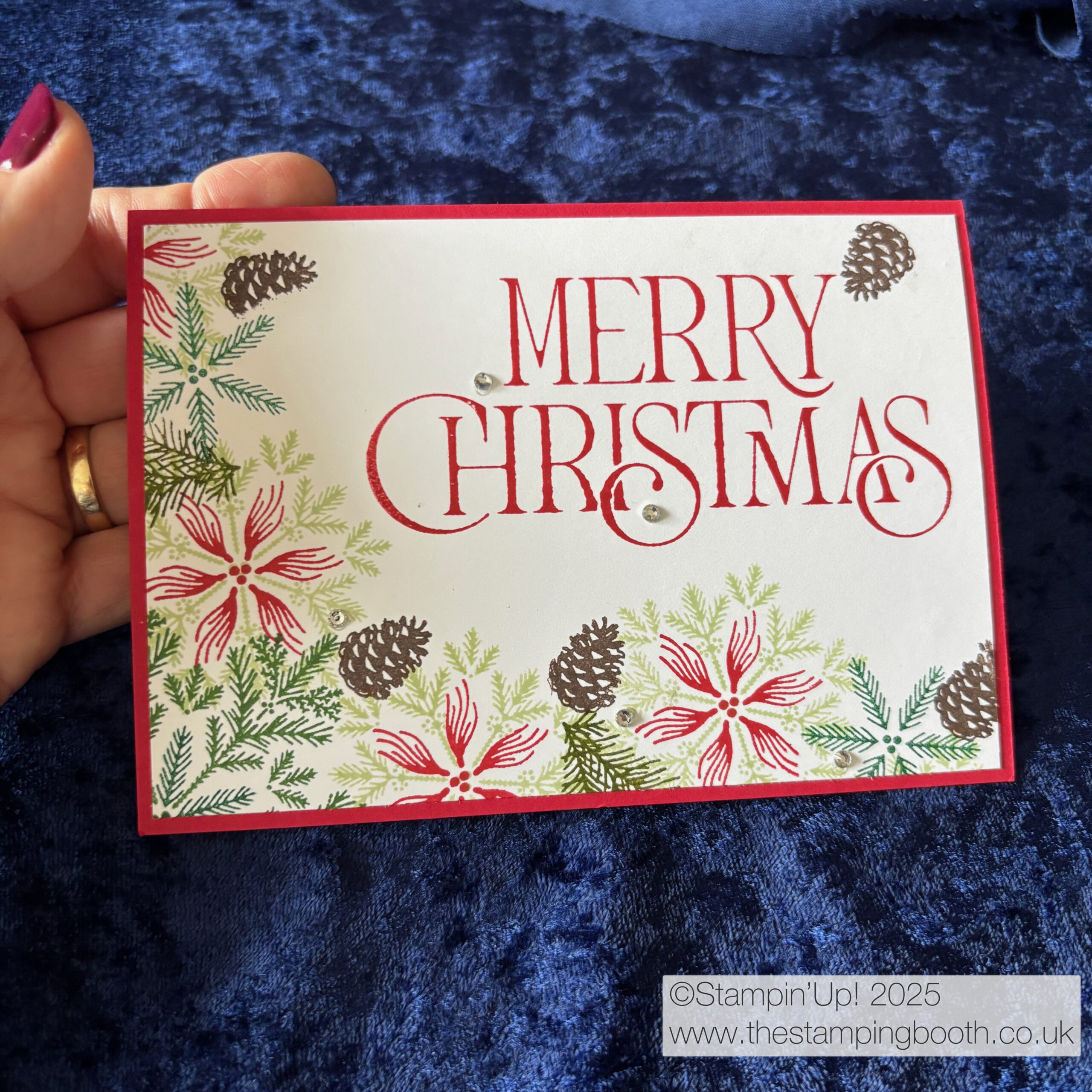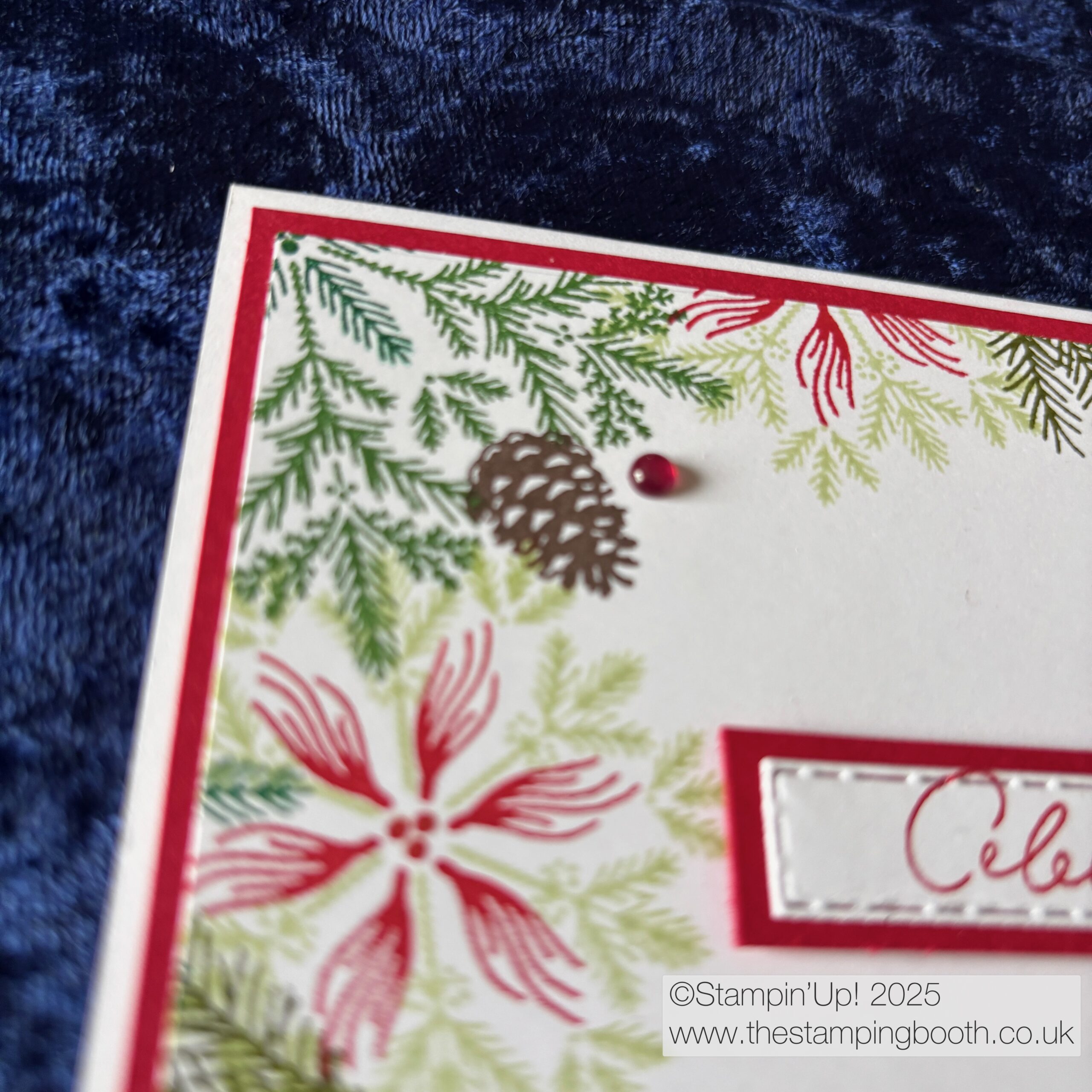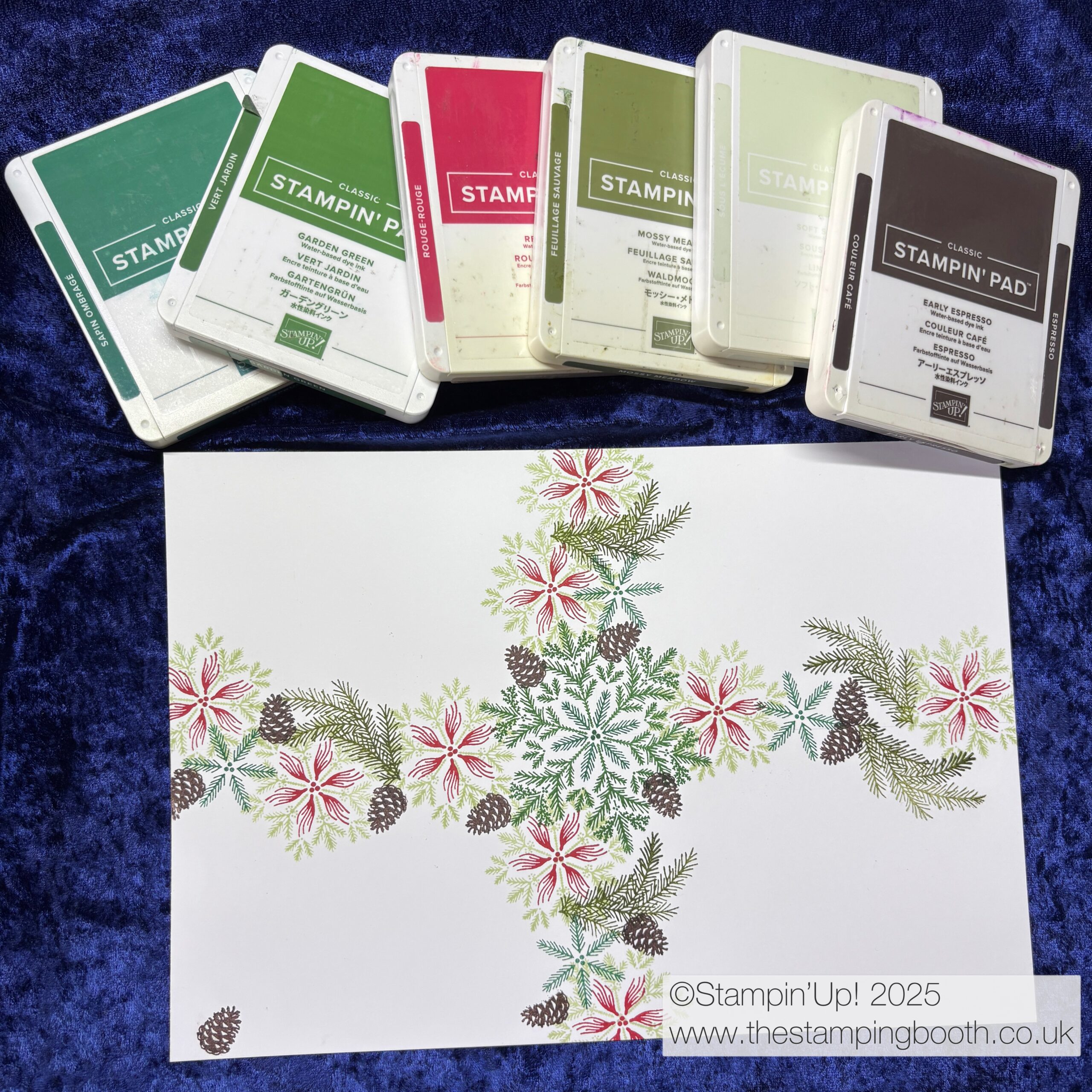 The colours I used were Real Red, Shaded Spruce, Garden Green, Mossy Meadow, Soft Seafoam and Early Espresso for the pine cones.