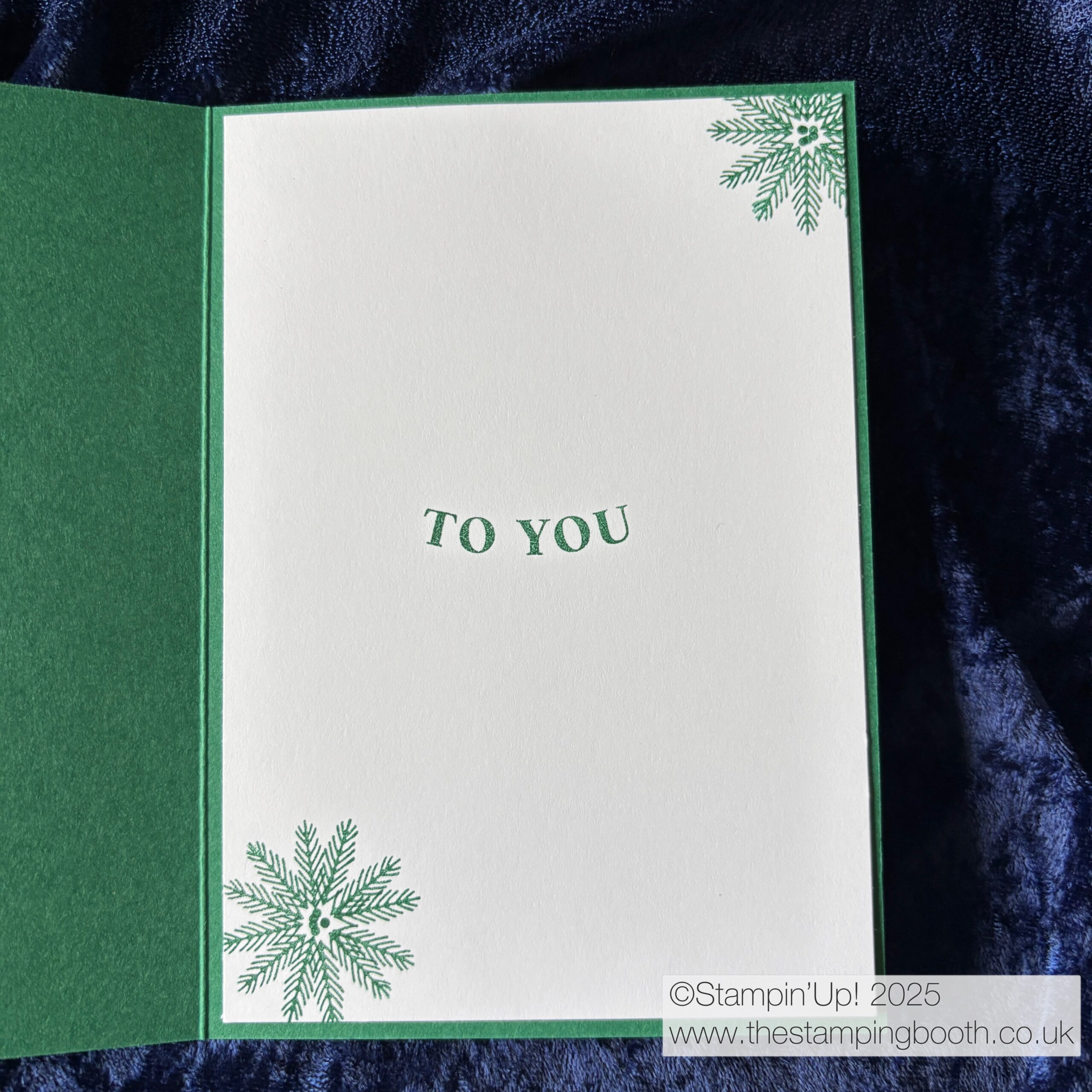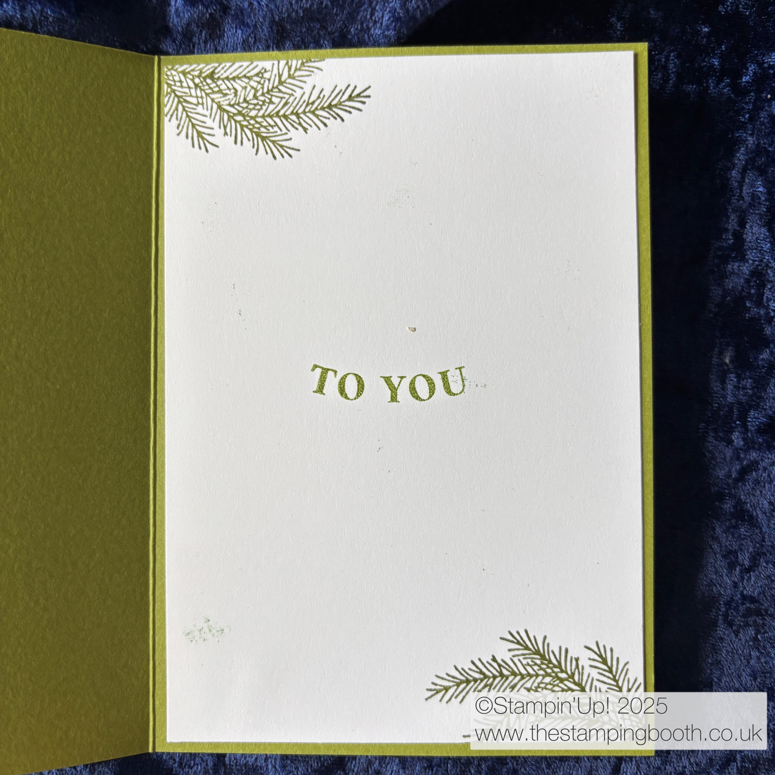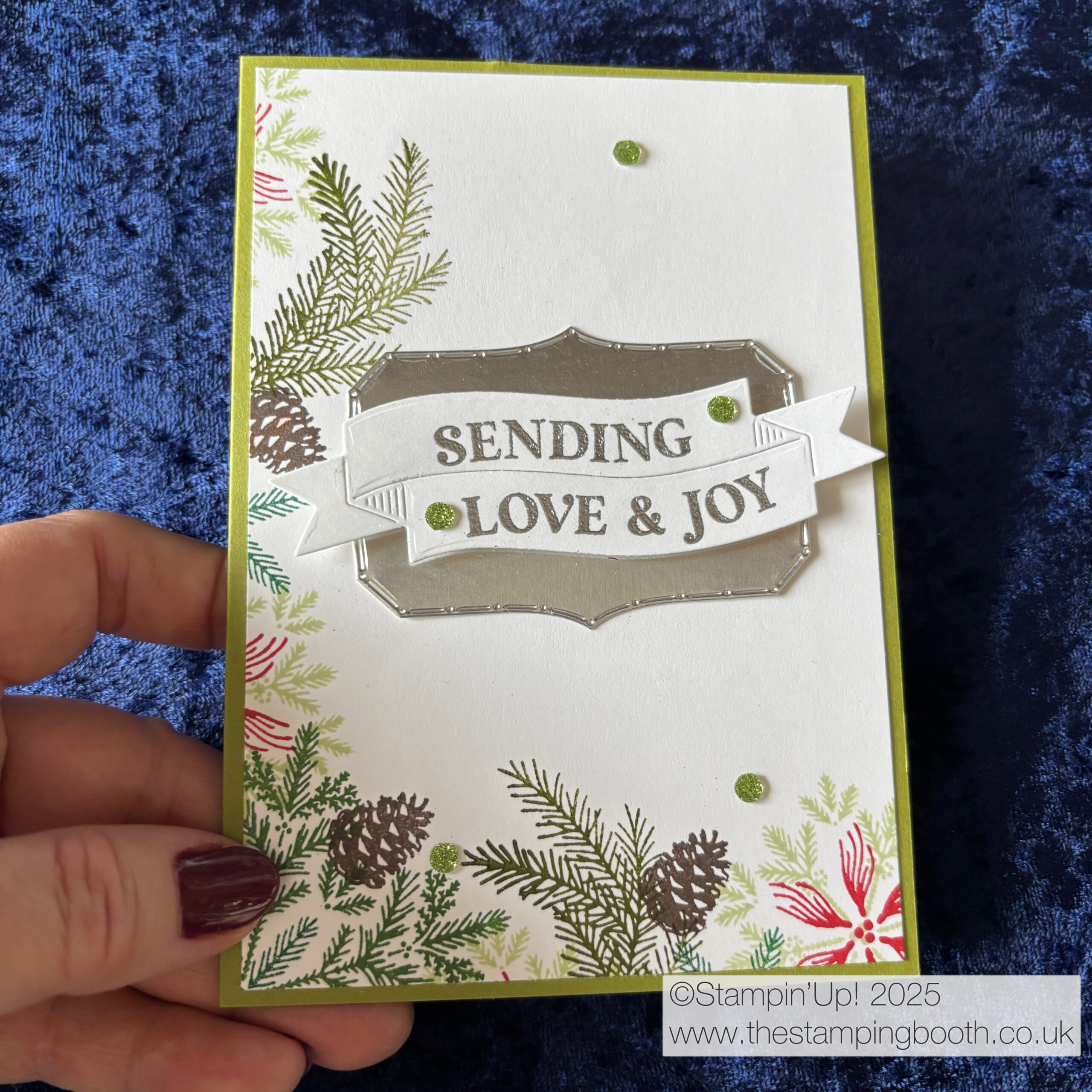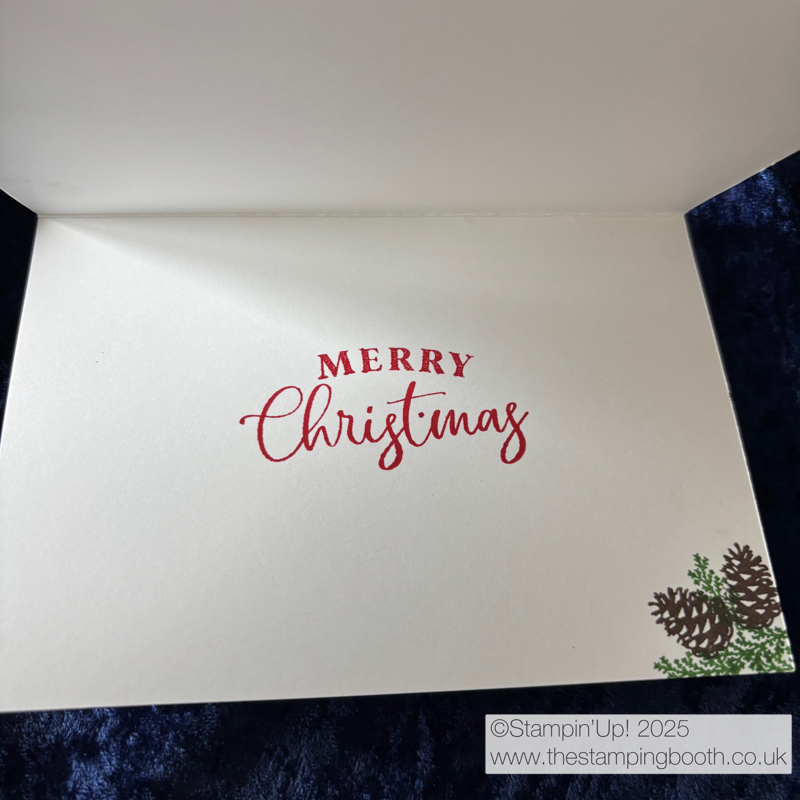 The colours I used were Real Red, Shaded Spruce, Garden Green, Mossy Meadow, Soft Seafoam and Early Espresso for the pine cones.